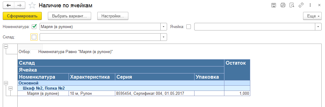 Отчеты по ячейкам можно посмотреть в разделе «Склад» - «Отчеты по складу» - «Адресное хранение» - «Основной».