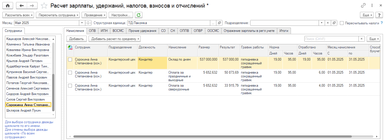 и удобно провести все необходимые операции по расчету заработной платы в одном окне.